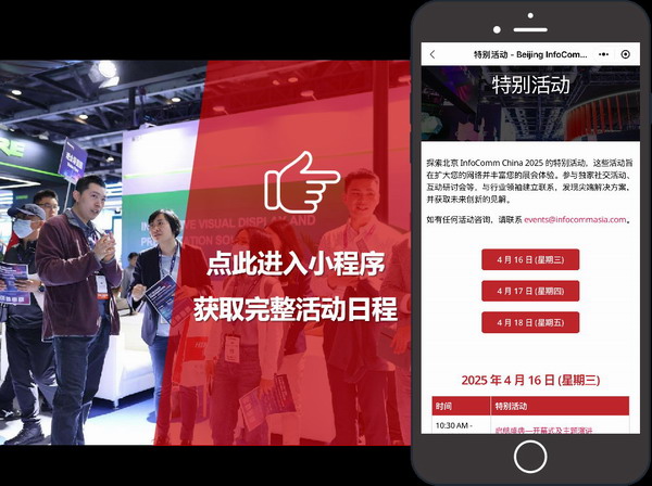 技術前沿的探索,還是行業精英的交流,這里都充滿了無限可能。誠邀您參與北京InfoComm China特別活動,更多精彩內容與合作商機等您來挖掘!
