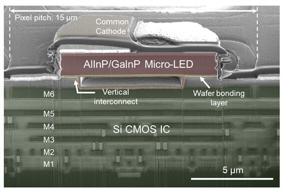 此外,團隊并未采用傳統的逐個轉移LED的加工方式,而是創新應用單片3D集成技術,將整個LED層直接堆疊在驅動電路之上。這種技術方案可有效降低器件對準誤差與缺陷率,為超高分辨率顯示器的穩定量產提供了可能。同時,研究團隊還掌握了低溫加工技術,避免了加工過程中驅動電路受損的問題。