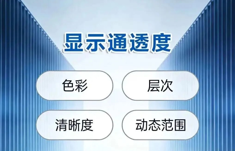 技術層面,該標準明確了“顯示通透度”的科學內涵,創新性地構建了主觀感受與客觀數據之間的關聯模型,將抽象的視覺感受拆解為色彩、層次、清晰度與動態范圍四大核心量化影響因子,并以此為基礎形成了精確的計算公式與標準化的測試規范。