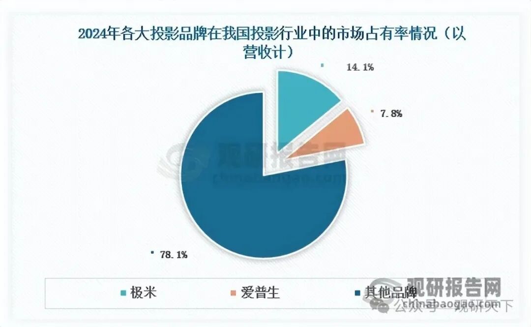 矩陣、廣泛營銷網絡及質量管控等優勢,多年來持續領跑國內投影市場,2024年以14.1%的市場占有率位居第一,較第二名的愛普生高出6.3個百分點。在中高端投影市場,由于