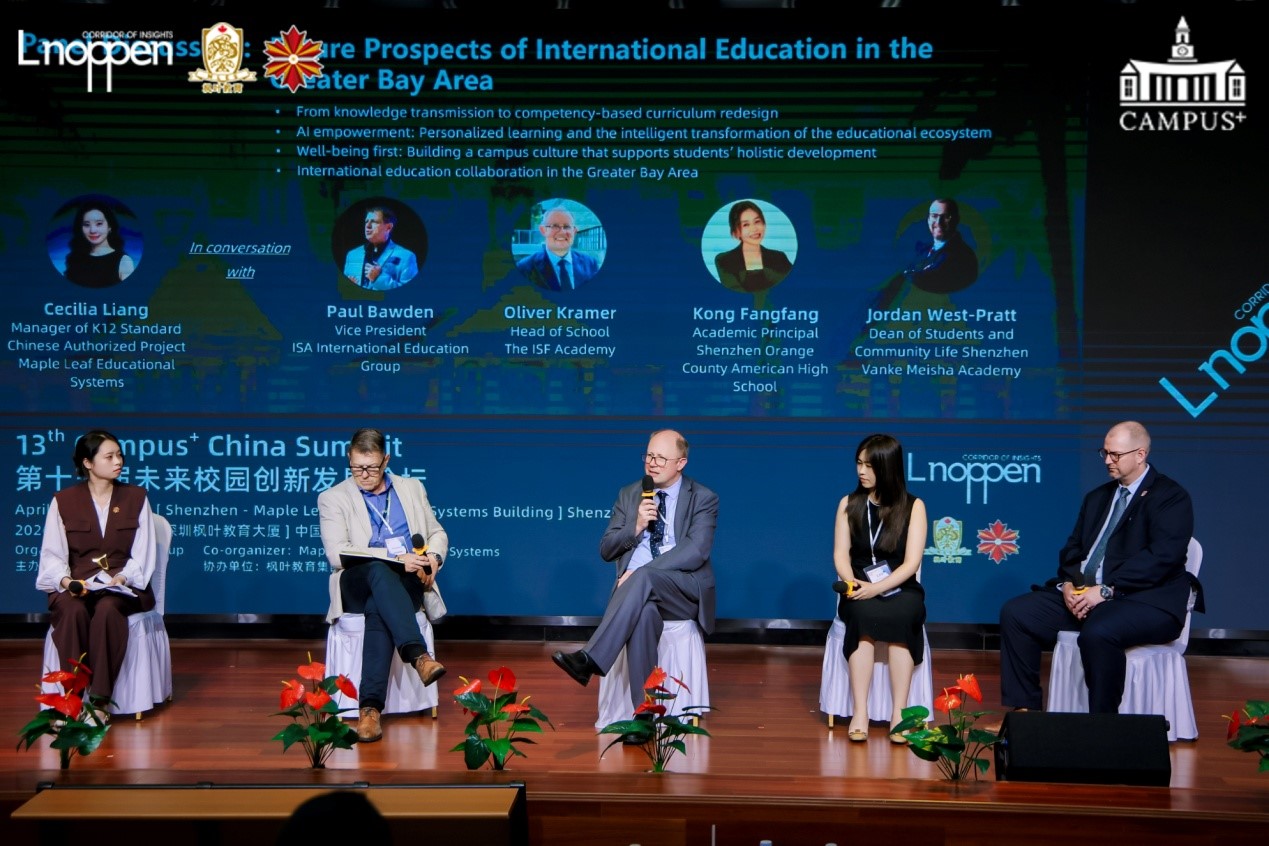 下午的小組討論主題為:大灣區國際教育的未來展望,該討論由楓葉教育集團K12標準中文授權項目負責人梁小娟主持,愛莎國際教育集團副總裁Paul Bawden、香港弘立書院總校長Oliver Kramer、深圳橘郡美高學術校長孔芳芳和深圳萬科梅沙書院學生事務與社區生活負責人Jordan West-Pratt積極參與了討論。嘉賓們圍繞“從知識傳授到能力為本的課程重構”、“AI賦能:個性化學習與教育生態的智能變革”、“Well-being優先:構建支持學生身心發展的校園文化”、“大灣區的國際教育合作”等話題展開了熱烈的探討和交流。