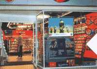 | 用作“飛躍式”銷售點顯示屏的dnp超對比屏幕。懸掛式屏幕無需使用投影箱,節省空間。 |
