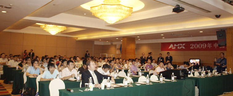 2009年中國區新產品巡展上海站”在上海建國賓館四樓九州廳隆重舉行。AMX各地代理商、經銷商、業內外人士以及行業媒體等受邀參加了此次新品巡展,共同見證了AMX