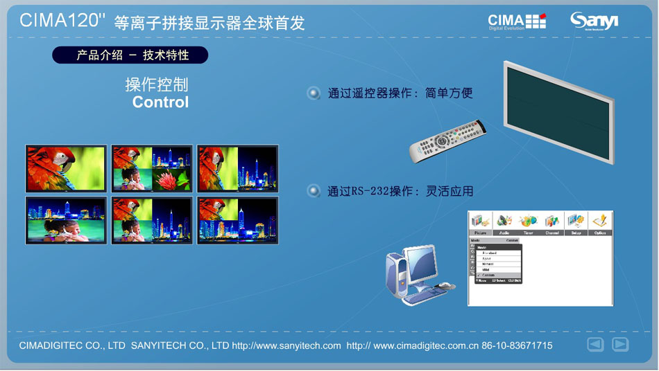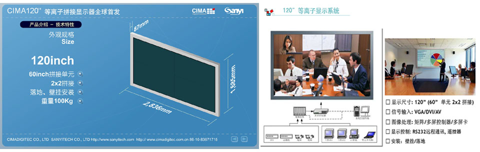 | CIMA 120”等離子拼接顯示器全球首發 2010年4月8日,國內大型顯示器件專業供應商北京三一友泰科技有限公司在世紀金源大飯店舉辦了主題為“創先突破 視領天下”的新產品發布會... [詳細] 應用無限-CIMA 120”等離子拼接顯示器 大屏幕拼接顯示產品已有十幾年發展歷史,在大屏幕行業人士共同努力下,拼接顯示無論在技術方面還是在應用需求方面都得到了迅猛的發展... [詳細] 詳解CIMA 120”等離子拼接顯示器 大屏幕商用行業的不斷發展,促使拼接顯示技術也得到了多元化進步,尤其是等離子、液晶拼接技術發展的不斷進步,很大程度上滿足了消費者的... [詳細] |