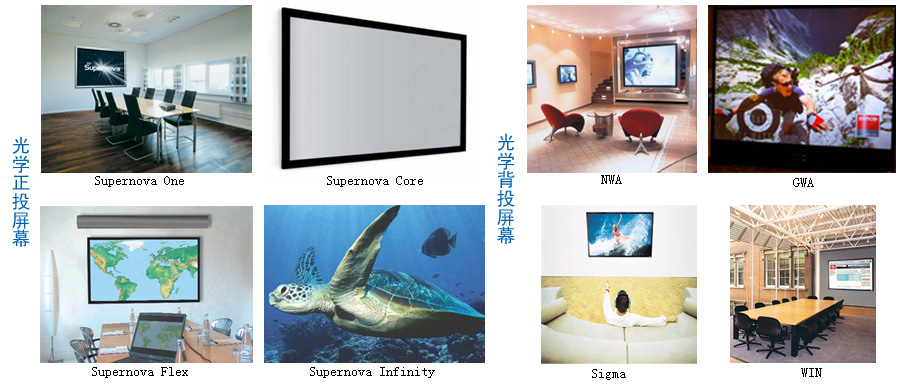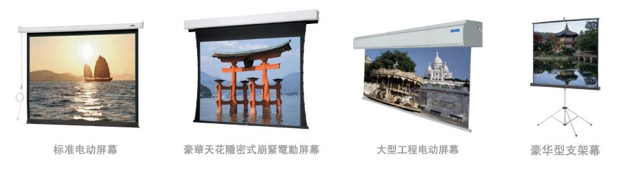 其擁有領選世界的卓越技術,生產的投影屏幕品種齊全(包括:廣角幕、超大幕、圖形幕、黑條紋幕及幕墻),尺寸由40″至200