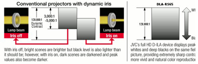 郁晨勇:JVC的對比度是業界最高的原生對比度,120000:1;我用通俗的語言說這個對比度的概念:在投影幕上,在一個黑暗的環境中,在一個黑夜里,一只烏鴉從中飛過,可以清晰地看到烏鴉的翅膀在抖動,非常有層次感和輪廓性。