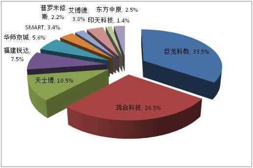 | 整體上看,電子白板主要是針對(duì)教育行業(yè)的應(yīng)用,在中國(guó)大陸市場(chǎng),電子白板目前采取兩種銷售方式:一種是總代理制,比如:SMART和普羅米修斯,在國(guó)內(nèi)的銷售人員比較少,只能依靠總代理來(lái)完成市場(chǎng)覆蓋,SMART全國(guó)總代理是大恒科技。普羅米修斯分別在華南、華東、華北等地設(shè)立區(qū)域總代理。
