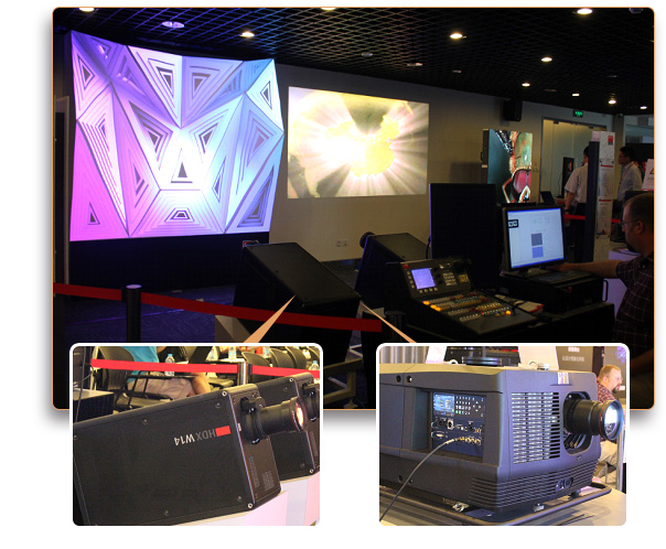 從2013巴可創新周了解到,此次活動的重頭戲是現場展示巴可在2013歐歌賽的舞臺創新應用,引發了與會者關注。“作為歐歌賽獨家技術支持商,巴可從舞美光路設計(SIMCAD)、視頻控制管理、現場實施等全程參與,為歐歌賽提供了完整的一站式系統解決方案,” 巴可大中華區產品市場部副總監薛峰繼續講道:“值的一提的是,晚會現場未使用一塊LED顯示屏,主舞臺背景僅用了13臺巴可40,000流明投影機做豎型融合變形,創新的舞臺效果更是震撼全場,為舞美舞臺設計帶來了更多選擇。” |
