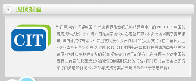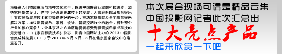 作為國內唯一的以頂級家庭影音、全宅電子集成、定制安裝與智能解決方案為主的大型展會,第三屆中國影音集成科技展CIT2013已經于6月6-8日在北京國家會議中心隆重舉行。作為我國北方地區每年一度的音響界與定制安裝行業的盛事,CIT2013展會受到了多方關注,在頂級私人影院與定制安裝逐步成為影音行業發展潮流的今天,CIT2013匯聚了眾多國內與國際頂級影音娛樂、智能控制...... |