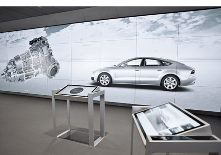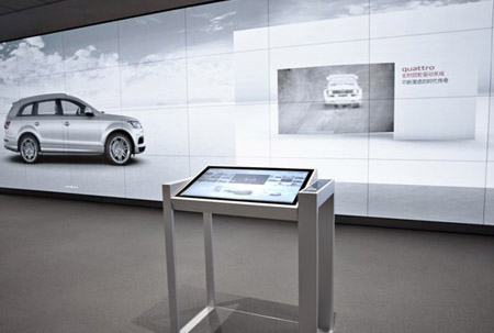 | ◇ 德浩與德國ICT技術團隊,筑造出世界最大,也是亞洲第一個Audi City ◇ 德浩打造的近百片60寸的等離子拼接,亞洲最大的等離子拼接墻之一 ◇ 運用最高端AV視聽行業的產品和智能互動技術,鑄造出最適合亞洲大都會的結合數字化產品演示與個人專屬服務的概念展廳設計 |