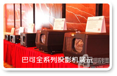 展示廳中間便是巴可投影機單機展示區,分別展示了巴可3DLP立體高亮、超小型投影機HDX-W系列、采用液冷技術的最新寬屏高亮度投影機FLM-R系列、WUXGA三片DLP投影機HDF-W系列。 |