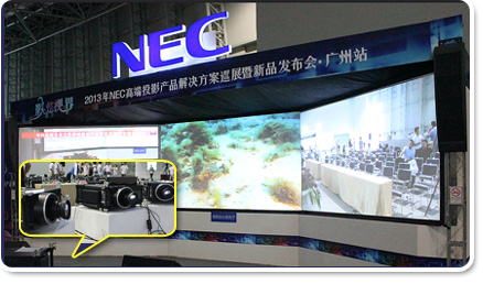 2013年8月2日,“影炫視界——2013年NEC高端投影產品解決方案巡展暨新品發(fā)布會廣州站”在廣東科學中心3樓E區(qū)隆重舉辦。作為國際顯示巨擘NEC,本次攜手其投影機總代理東方中原帶來一場影炫視界的完美方案展,同時,并借此機會發(fā)布了多款高端工程投影機新品。本次廣州站巡展主要展示的包括:NEC高端工程投影機、東方中原液晶拼接單元、松下RAMSA音響系統(tǒng)、OS投影幕等設備,打造出多套適用于多種領域的顯示系統(tǒng),包括:4D影院、曲面投影、無線網(wǎng)絡會議室、微型立體投影、液晶拼接顯示墻、虛擬仿真、互動教學體驗區(qū)、屏幕沙盤等解決方案 ,為現(xiàn)場觀眾帶來震撼的視覺體驗,展現(xiàn)了東方中原在顯示行業(yè)出色的產品功能及解決方案提供能力。 |