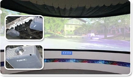 此解決方案采用:3臺NEC工程機PX750U+;場景漫游外設一套(操縱桿);定制弧形幕;音響1套(立體聲);融合一體機1臺;軟件(中視典)。 |