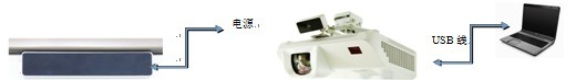 信號(hào)接收器與電腦采用USB線連接(接收器端使用mini USB,電腦端使用標(biāo)準(zhǔn)USB),激光發(fā)射器只需供電,信號(hào)接收器與激光發(fā)射器之間采用紅外無(wú)線連接. |