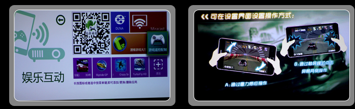 如今的電視已經不再只是單純的電視,而是一種互動休閑的娛樂方式,故而對于很多人來說游戲功能也是必須要考慮在內的!胞惒试仆禖1”同時內置安卓、iso系統無線互聯,兼容Airplay標準無線投射技術,通過手機、遙控進行游戲操作游戲,手機投影為大屏幕。 |