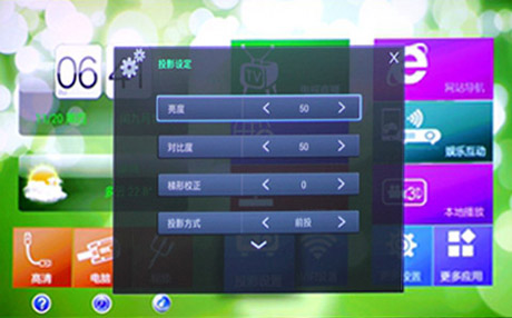“麗彩云投 C1”的投影設置方面包含了常用的投影方式、圖像比例、亮度對比度、梯形校正等功能,另外開機音樂設置增強其個性化,并且增加藍牙傳輸功能,加強了電視與手機的互動傳輸的便捷。 |