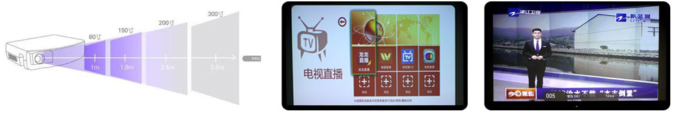 當然,“麗彩云投 C1”3D智能無屏電視所謂”無屏”最大的優點是可以實現畫面投放到任何白墻等類似幕布的載體上,擺脫傳統液晶電視那樣對液晶屏幕的限制,投影比為1.38:1,投射尺寸高達30—300英寸而且能夠實現大畫面投放,本次測試中所使用的投影幕面積為120寸,顯示效果非常逼真生動。而且由墻幕反射的光線十分柔和,不會產生視覺上的疲勞。 |