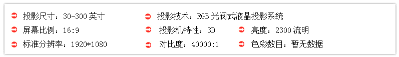 愛普生EH-TW6510C標準分辨率為1920×1080,投影對比度高達40000:1,內置雙10W 立體揚聲器,無需外接揚聲器,便可輕松享受音視頻的震撼。同時省去了接線的麻煩,安裝更加方便,外觀整潔干凈。而且還帶2D轉3D功能。其還有超級解像度技術,對于低解像度和模糊的圖像也能生成清晰銳利的影像。