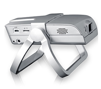 支架部分的設計和機身融為一體,在裝上支架后并沒有感覺到不自然。支架能夠調整高度、方向、角度,滿足用戶在不同場合下使用。另外支架最大的用途就是移動電源功能,通過轉接線能夠讓投影機實現200分鐘的播放時間。