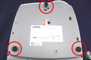 Vivitek(麗訊)DX864投影機在機身底部設(shè)置有三枚可調(diào)節(jié)支架,前端一枚后端兩枚,大大方便了投影畫面高度的調(diào)節(jié),調(diào)節(jié)范圍約在4厘米左右,讓投影機在有限空間內(nèi)有更大的操作余地。 |