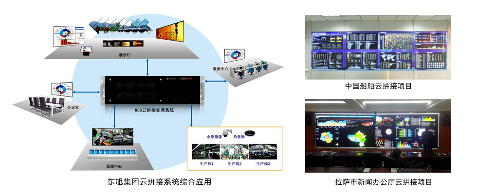 云拼接,是在網絡技術背景下誕生的,基于云計算技術的拼接顯示系統。是以云拼接控制器為核心設備的,通過云計算技術,而融合各種傳統軟、硬件設備的綜合拼接處理系統。