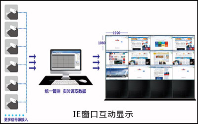 亮點一:實現多個IE逐點高清同時顯示在拼接大屏幕上,且每個IE窗口都能實現控制和互動。 |
