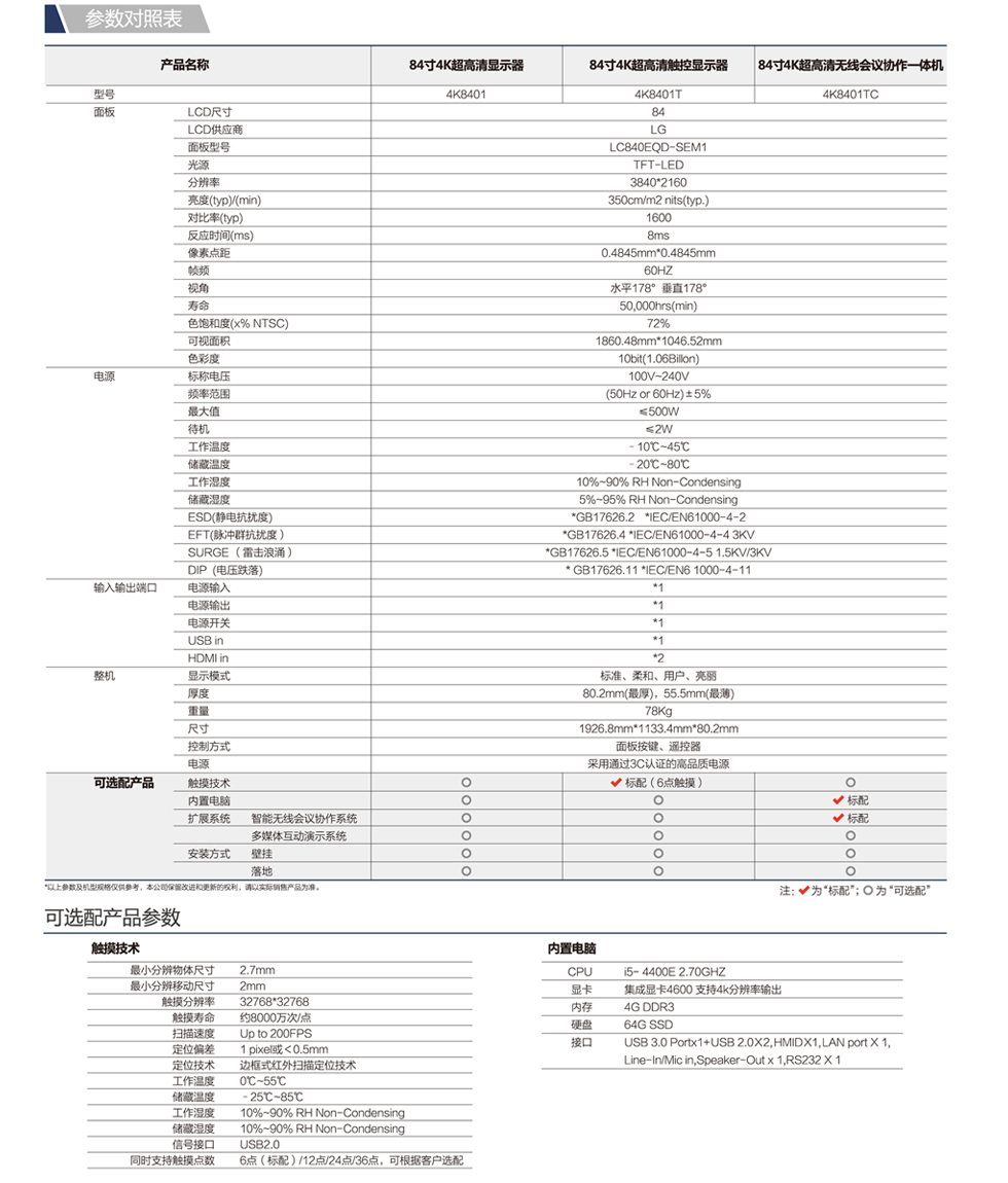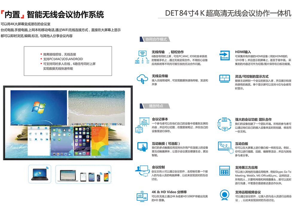 DET德浩84寸4K 超高清無線會議協作一體機 |