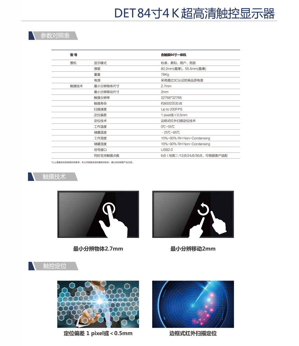 DET德浩84寸4K 超高清觸控演示一體機 |
