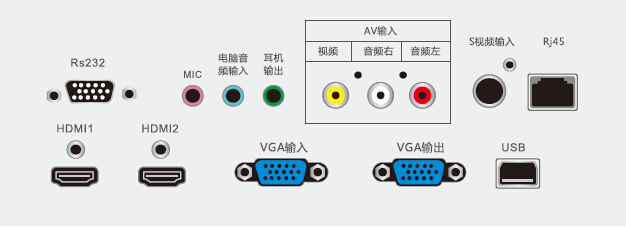 可支持HDMI,USB,VIDEO,S-VIDEO,RS-232,RJ-45,AV口,VGA輸入輸出,