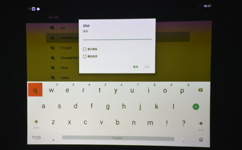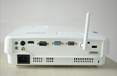 由于加入了智能無線功能,明基E500智能商務投影機的背部設有信號收發天線,這也是其與以往機型在外觀上的最大不同之處。經過實測,編者發現此信號首發天線的作用很大,筆者先將投影機置于一個房間內,然后開機,在未安裝此天線時,WIfi信號強度為兩格,安裝上天線后WIfi信號強度就是滿格。信號收發天線的安裝也很方便。