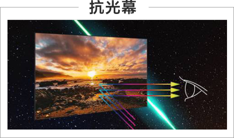 對于多數傳統投影機產品來說,投射方式一般采用的是直投方式,再通過投影幕布漫反射后供肉眼捕捉畫面。激光電視由于光線接觸幕布的角度比較特殊,所以需要搭配定制的幕布產品,且由于該幕布的特殊涂層及紋理設計,能夠保證用戶在幕布前收獲更明亮、更優質的畫面效果。相比于一般投影機的普通白幕,激光電視的抗光幕是一種帶有特殊涂層的金屬幕,其能反射干擾顯示的環境光線,使激光電視主機發出的光線反射出來,加上激光電視投射的光線與接觸幕布的角度比較特殊,所以搭配定制的金屬幕布,讓激光電視的投影顯示近乎不受環境光干擾,投射畫質更明亮、更細膩。