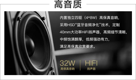 激光電視不僅在投影顯示上出色,與一般投影機相比,激光電視更能滿足用戶對聽覺的需求。傳統投影機產品的音響系統普遍表現差強人意,而激光電視則著力加強了在聲音表現上的不足,目前在售的激光電視系統中,普遍搭配了高品質的HiFi級音響系統,保證了用戶的聽覺體驗。激光電視在音質方面也花了不少心思。針對家庭客廳對“聽”的要求,激光電視搭配專業的音響系統,高質量的音質和大屏清晰的顯示效果相形益彰,讓用戶有更好、更舒適的整體視聽享受。