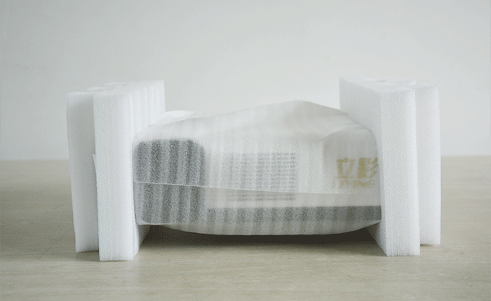拿出產(chǎn)品,只見(jiàn)產(chǎn)品嵌在厚實(shí)的海綿上,機(jī)身也有泡沫袋保護(hù),不必?fù)?dān)心機(jī)器在包裝箱內(nèi)比磕損,透過(guò)白色的泡沫袋,依稀看到立影白色機(jī)身,與保護(hù)色“渾然一體”。