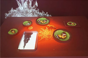 | 佳能3D Mapping投影采用兩臺7000流明激光工程投影機WUX7000Z搭配超短焦鏡頭RW-SL06UW疊加實現(xiàn),除了LCOS技術(shù)帶來的細膩高畫質(zhì)和高色彩還原度外,超短焦鏡頭RW-SL06UW還支持大范圍鏡頭位移,垂直最大可達90%。同時,該款鏡頭的TV失真小,在多機融合投影時可使畫面邊緣融合更加自然。該解決方案僅需1.16米的距離便可投影100英寸畫面,即使靠近屏幕的位置也能投影出色彩逼真、畫面清晰的大尺寸影像。 | 麥克賽爾沉浸世界展區(qū)通過三維空間內(nèi)的沉浸式投影創(chuàng)造奇幻視覺空間,結(jié)合三維傳感器使得參與者的動作實現(xiàn)影像化。觀眾踏入展區(qū)中,隨著步伐的移動,身邊的影像動靜、虛實結(jié)合,讓觀眾體驗不同次元的感官享受。曲面:1DLP激光光源投影機MMP-BL1000U 2臺;地面:1DLP激光光源投影機MMP-WL620U 2臺。 | "帝王邀約,乾隆御宴"展項,應用黑科技5D光影餐桌,重現(xiàn)宮廷進膳情境。不僅餐廳的三面墻壁用畫面包圍著觀眾,餐桌上亦是流光溢彩,每個餐盤上都覆蓋有獨特影像,移動餐盤,影像亦隨之移動,充滿創(chuàng)意。 |