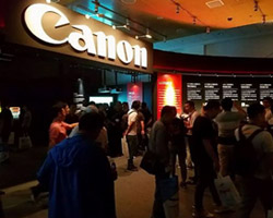 | 松下展示了一款激光工程投影機新品PT-FRQ100C。這款單芯片DLP投影機分辨率高達WQXGA+,亮度達到了10000流明,具備出色的色彩表現(xiàn)力,搭載多種功能豐富的接口,具備20000小時免維護,高穩(wěn)定性兼顧緊湊機身,可滿足主題公園、會議、展覽展示等多種行業(yè)用途。 | 佳能所展示得4K曲面投影解決方案采用了具有原生4K超高分辨率,6,000流明的4K600STZ激光工程投影機,該機搭載了3片4K LCOS反射式液晶面板,可以呈現(xiàn)平滑、細膩、幾乎無柵格、具有高色彩還原度和豐富層次感的影像,為用戶帶來了如親臨現(xiàn)場般的沉浸感。 |