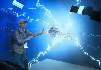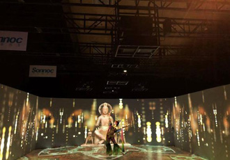 | 利亞德3D Magic Box三維數(shù)字魔盒 利亞德旗下藍(lán)碩科技打造的3D Magic Box三維數(shù)字魔盒。將LED屏配合網(wǎng)紅“巨浪”視頻內(nèi)容,形成的透視效果,讓人不戴眼鏡即可感受逼真的裸眼3D效果。其轉(zhuǎn)角弧度還可根據(jù)尺寸自由調(diào)節(jié),使曲面轉(zhuǎn)角與直面屏幕的視頻內(nèi)容完美融合。柔性LED屏幕所具有的超強(qiáng)可塑性,能具象更多的造型,結(jié)合視頻效果展現(xiàn)千型百態(tài)的視覺世界。 |