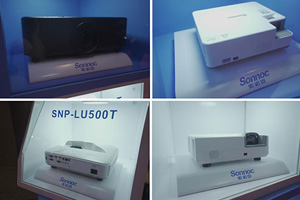 索諾克今年發布的新品都能在靜態展示區看到,從12000流明到3500流明,SNP-DU12K、SNP-LU500T、SNP-DU5200E、SNP-CU400UT和B1S系列,從短焦到超短焦,場景覆蓋面十分廣泛。另外還有熱門產品索諾克長江系列激光投影儀進行展示。