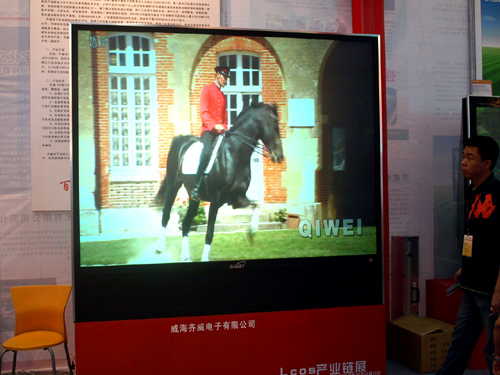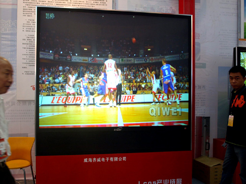在一號館LCOS產品鏈展區,威海齊威100英寸超大超薄高清液晶光顯電視BT100-90A吸引了不少前來參展的觀眾,超大的畫面、高清晰的的顯示效果盡顯其魅力!