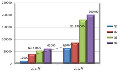 雅圖掌門人表示,2012年累計投影機出貨量大概在18萬臺左右,相比去2011年增長50%。雅圖取得如此成績,主要憑借著短焦產品的合理化布局,在教育行業市場贏得多個標單。